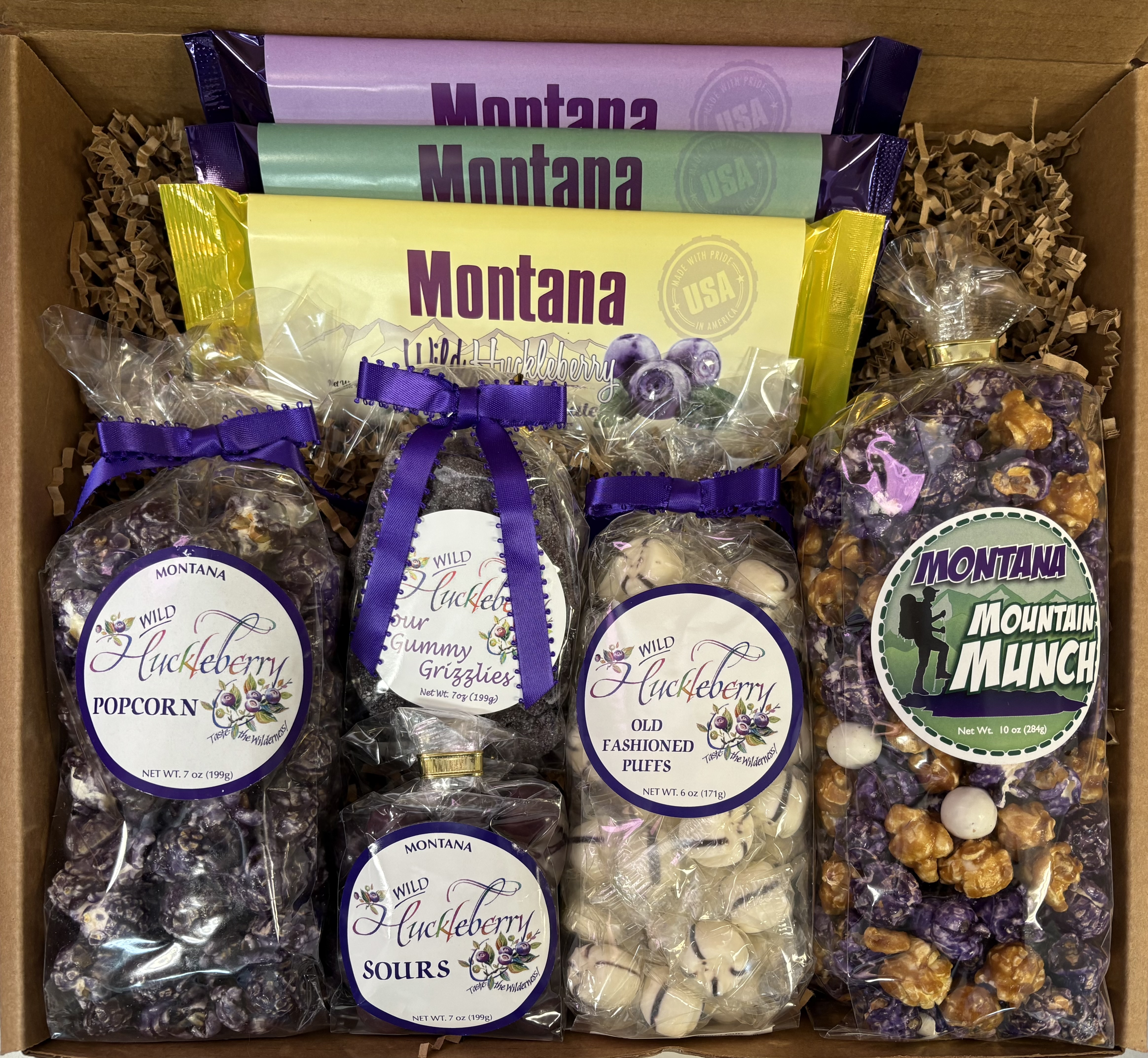 • Mountain Munch - A irresistible blend of caramel corn and candied huckleberry popcorn for those who love a perfect sweet-and-crunchy mix.